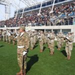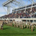 Emotivo y vibrante acto en el estadio San Nicolás Ciudad, la convocatoria fue excelente y el estadio estuvo repleto. Los alumnos de 4º año de establecimientos educativos de la ciudad realizaron la “Promesa de lealtad a nuestra bandera” y los soldados del Ejército Argentino “Juraron defenderla”.