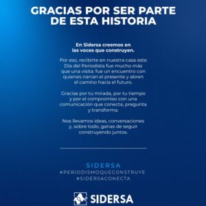 Para cerrar la jornada, cada invitado recibió un presente corporativo de alto valor simbólico. Lucrecia Payer, responsable de Comunicación y Bienestar de Sidersa, fue quien generó un clima de camaradería logrando que todas las atenciones estuvieran a la altura del evento, garantizando así una experiencia impecable para los medios locales.