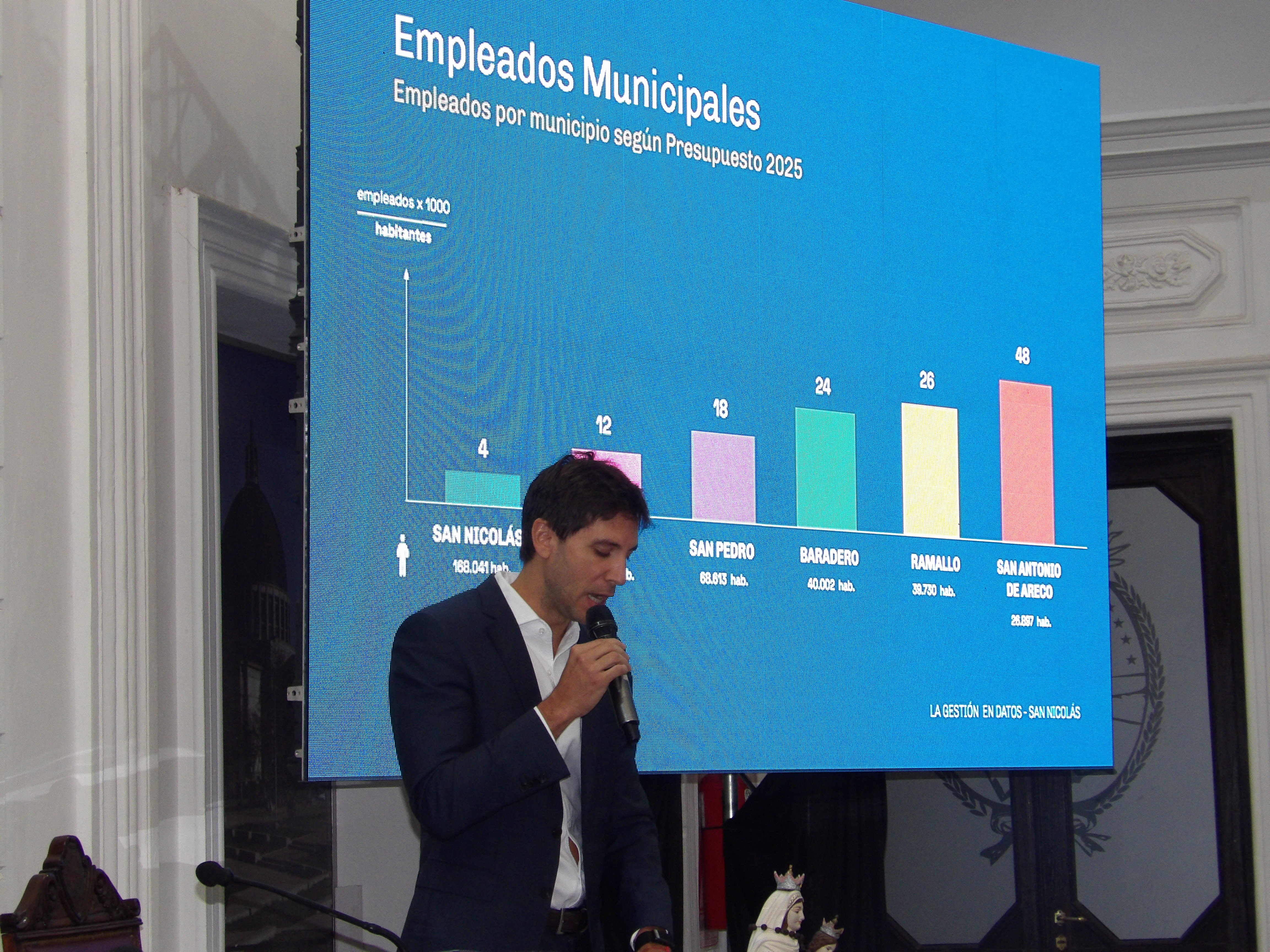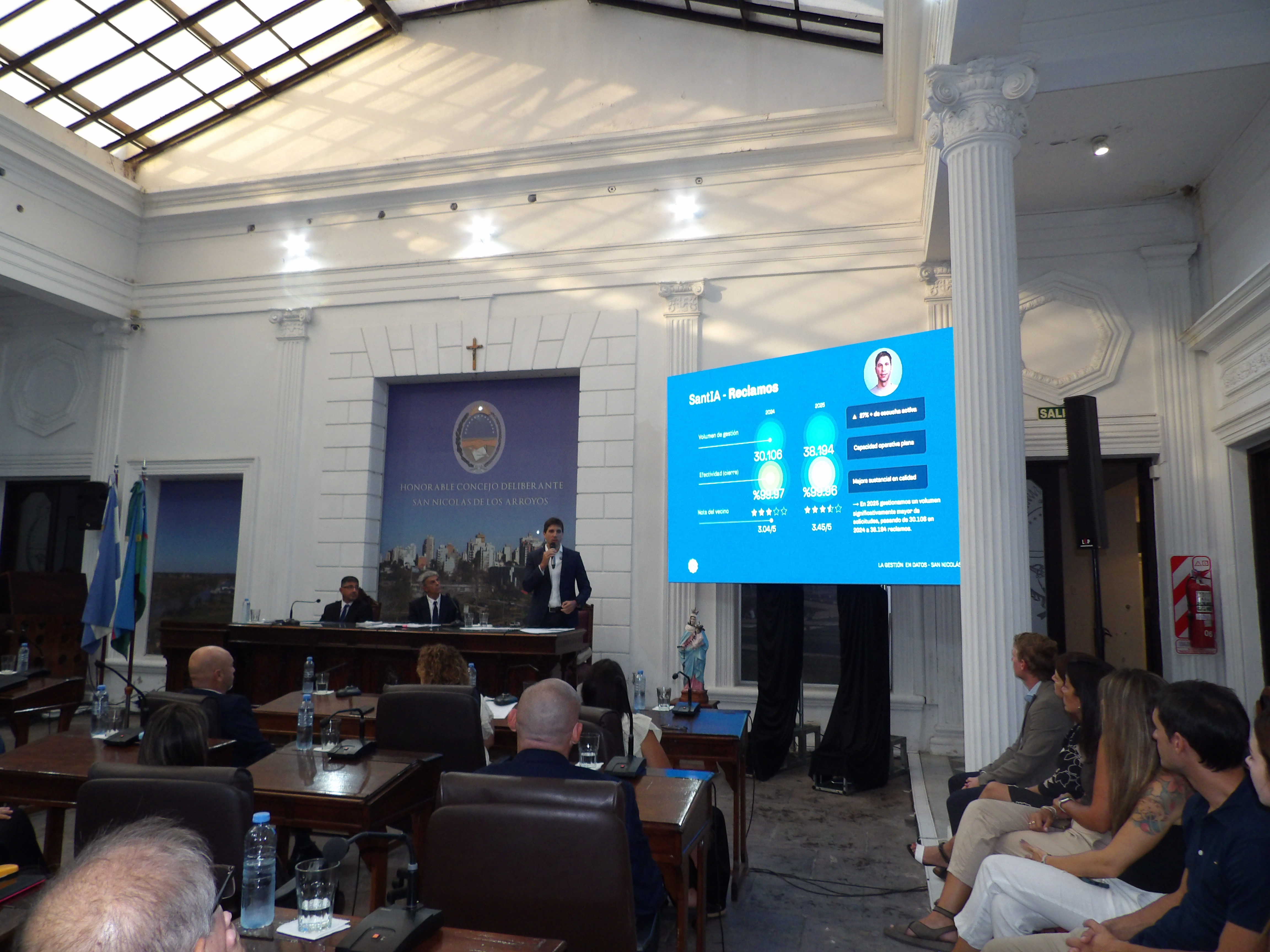 En la apertura del 117° período de sesiones ordinarias del Honorable Concejo Deliberante de San Nicolás , se incorporó un formato innovador: además de la exposición tradicional, se utilizó una pantalla gigante que permitió proyectar de manera visual las principales acciones de gestión, facilitando así una mejor comprensión de los resultados por parte de los asistentes.