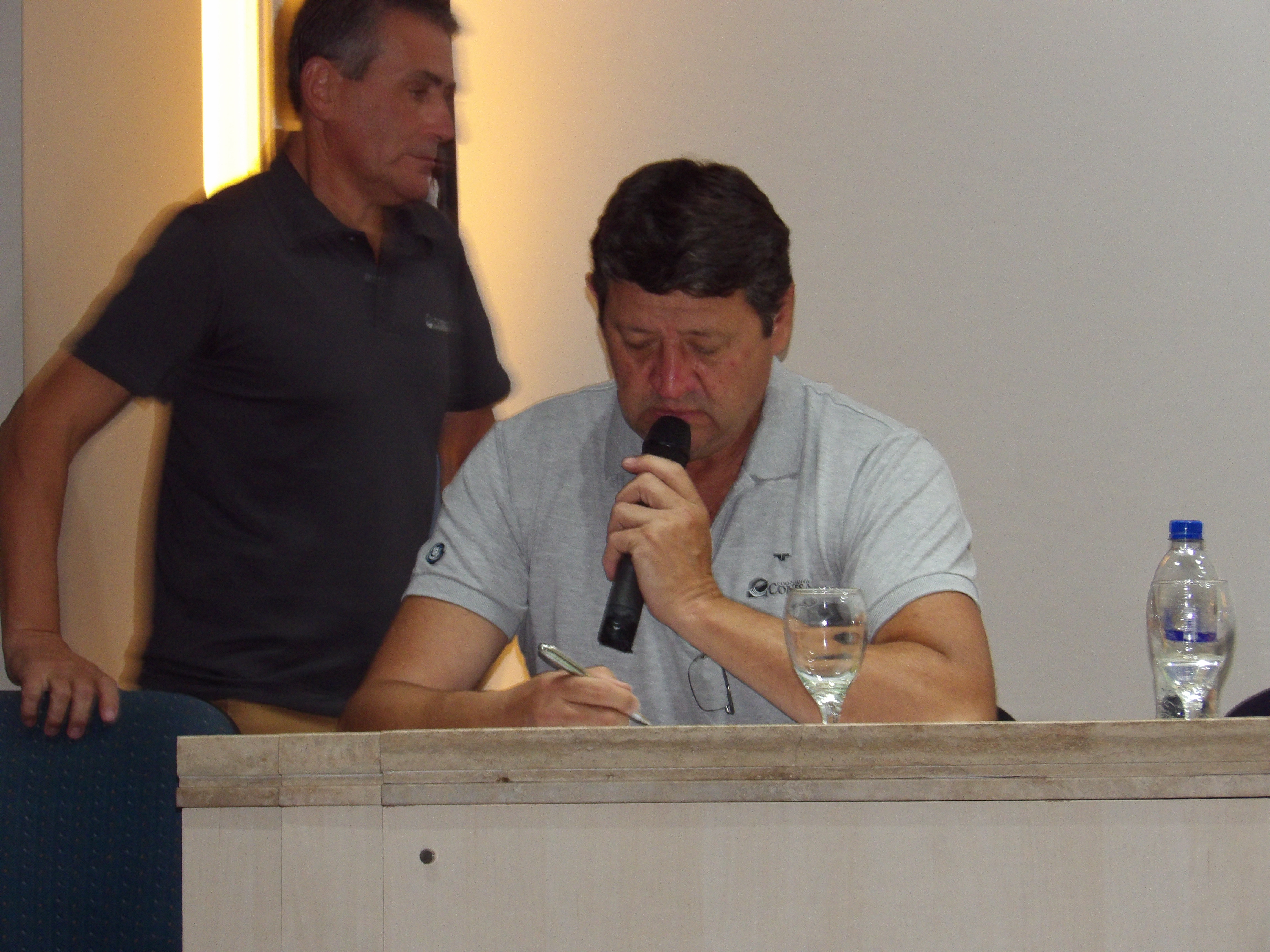 Palabras del presidente de la Cooperativa de Conesa (mandato cumplido) Javier Lazari y las palabras del flamante gerente de la cooperativa Contado Walter Vega