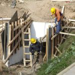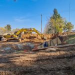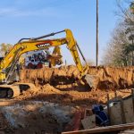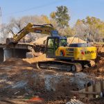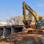 En este momento se está llevando a cabo el movimiento de suelo en las entradas de los desagües pluviales. También se están demoliendo algunas lozas de aproximación del puente y se colocaron columnas nuevas de media tensión para llevar energía eléctrica al lugar.