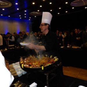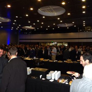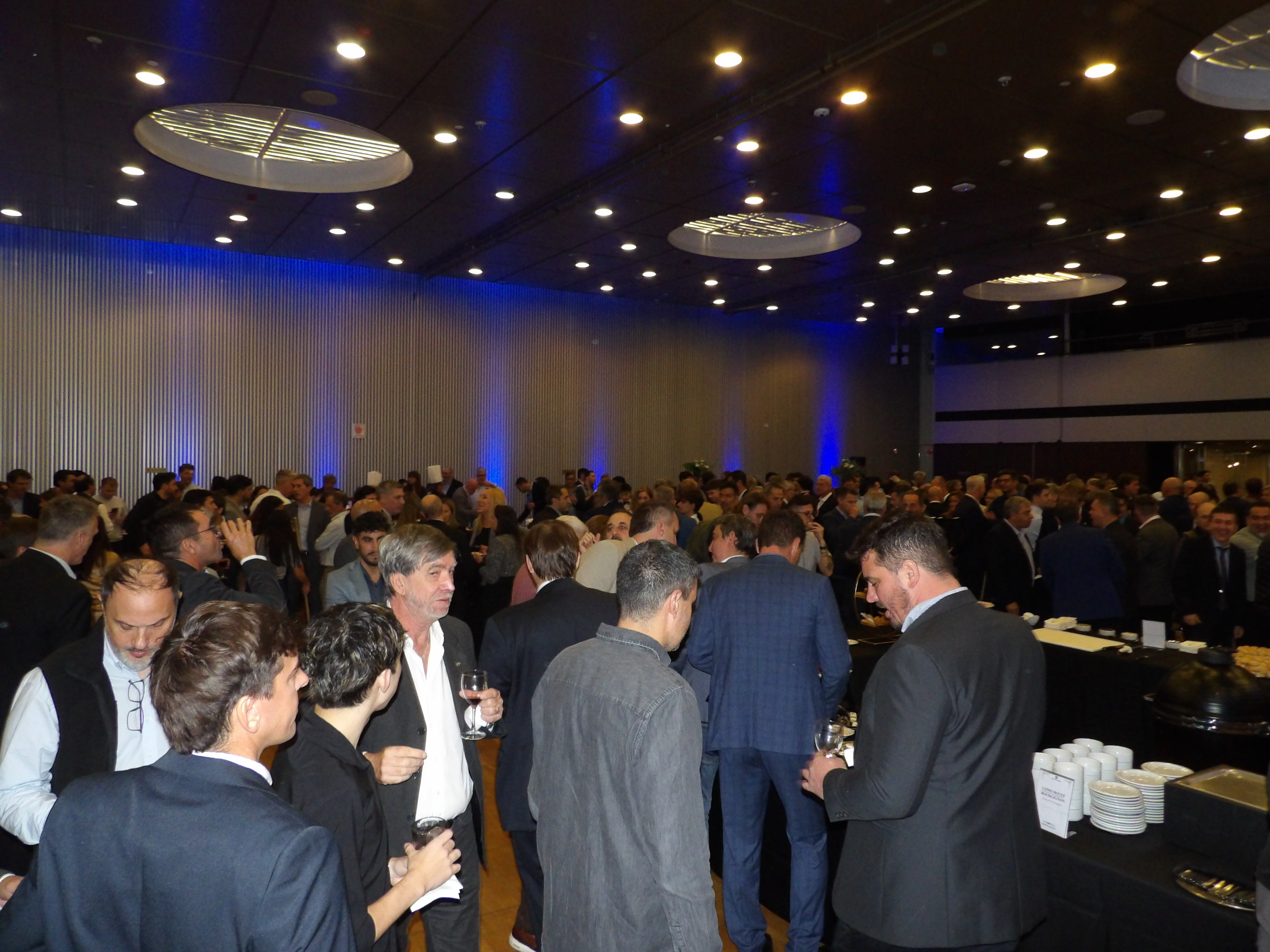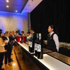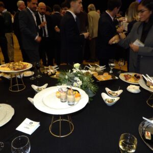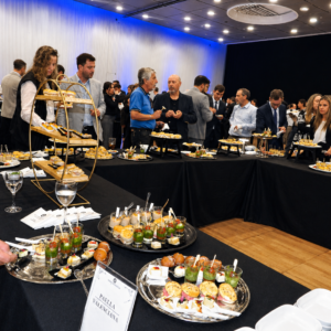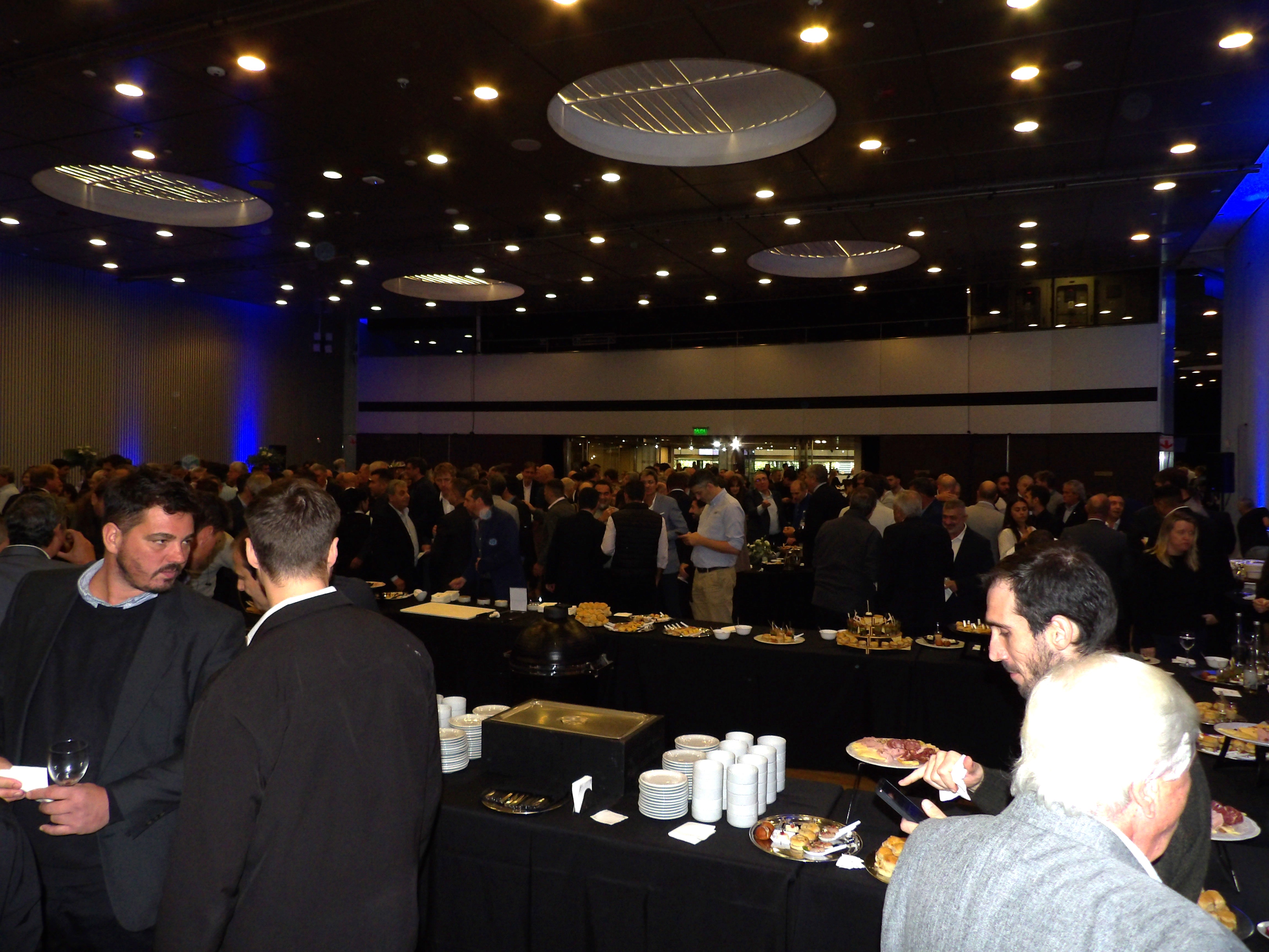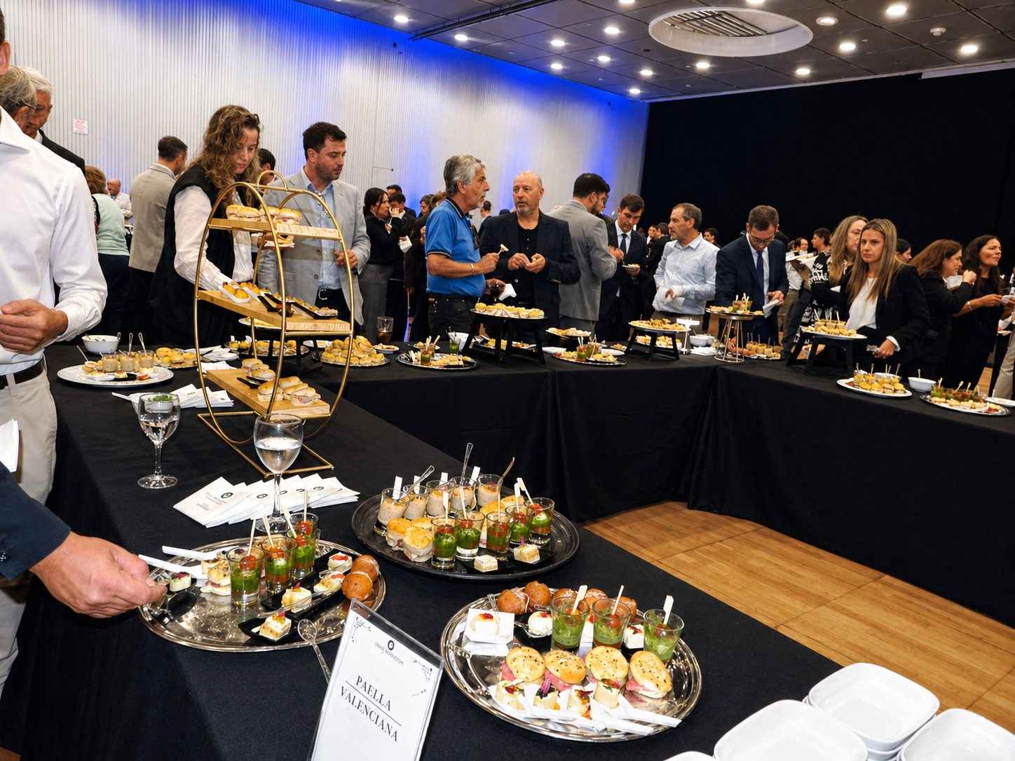 Finalizado el tradicional remate de soja, y tras las exposiciones brindadas ante el público y la prensa, la jornada dio paso a su instancia social, ya convertida en un sello distintivo del evento. En el salón contiguo, los asistentes fueron recibidos con un cuidado cóctel que propició un clima de encuentro y distensión.
