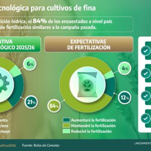 En cuanto al contexto local, señaló que la campaña fina 2025/26 se perfila con condiciones económicas más favorables para el productor. En cuanto a precios, el trigo cotiza levemente por encima del año pasado (+3%), aunque aún se ubica un 5% por debajo del promedio de las últimas cinco campañas. Sin embargo, la baja en los costos mejora la relación insumo-producto y permite proyectar una leve mejora en la rentabilidad proyectada. Este escenario sería aún más favorable si se mantuviera la reducción en los derechos de exportación del 12% al 9%. Además, se proyecta un uso de tecnología al menos igual, e incluso algo superior, al de la campaña pasada, lo que refuerza las perspectivas productivas positivas.