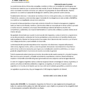 La presente campaña vamos a generar un volumen de grano cercano a la máxima producción argentina de los años 1.998 y 1.999, que fue de siete millones de toneladas, pero dedicando 1.3 millones de hectáreas menos que en aquellos años. En galería continúa la información.