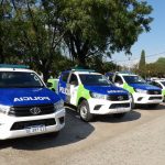 Esta mañana el Intendente presentó frente al Palacio Municipal los nuevos patrulleros: tres camionetas Toyota Hilux 4×4 y un auto Volkswagen Vogage, todos vehículos cero kilómetros, asimismo oficializó el pase de la Policía Local a Comunal.