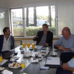 El Presidente del Banco Provincia Juan Curutchet estuvo en COMIRSA y fue recibido por Walter Santalla anfitrión de la casa. En una reunión informal en la sala de reuniones del parque y con una agenda ajustada en su tiempo, Curutchet tomo contacto con los empresarios que se encuentran operando con el banco provincia.