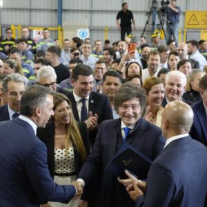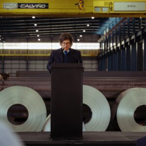 San Nicolás de los Arroyos, acompañado por Federico Sturzenegger, autor del Régimen de Incentivo a las Grandes Inversiones (RIGI); Diego Santilli y Karina Milei. La presencia del mandatario se dio en el marco del reconocimiento a la empresa por haberse convertido en la primera compañía industrial argentina en recibir la aprobación de un proyecto bajo el nuevo régimen. Durante la recorrida, las autoridades nacionales conocieron los avances del Proyecto Sidersa+, que contempla la construcción de una planta siderúrgica integral de última generación, con una inversión total de 300 millones de dólares. Parte de este desarrollo cuenta con un financiamiento del banco ICBC Argentina por 100 millones de dólares, en una operación considerada entre las más relevantes del sector metalúrgico nacional.