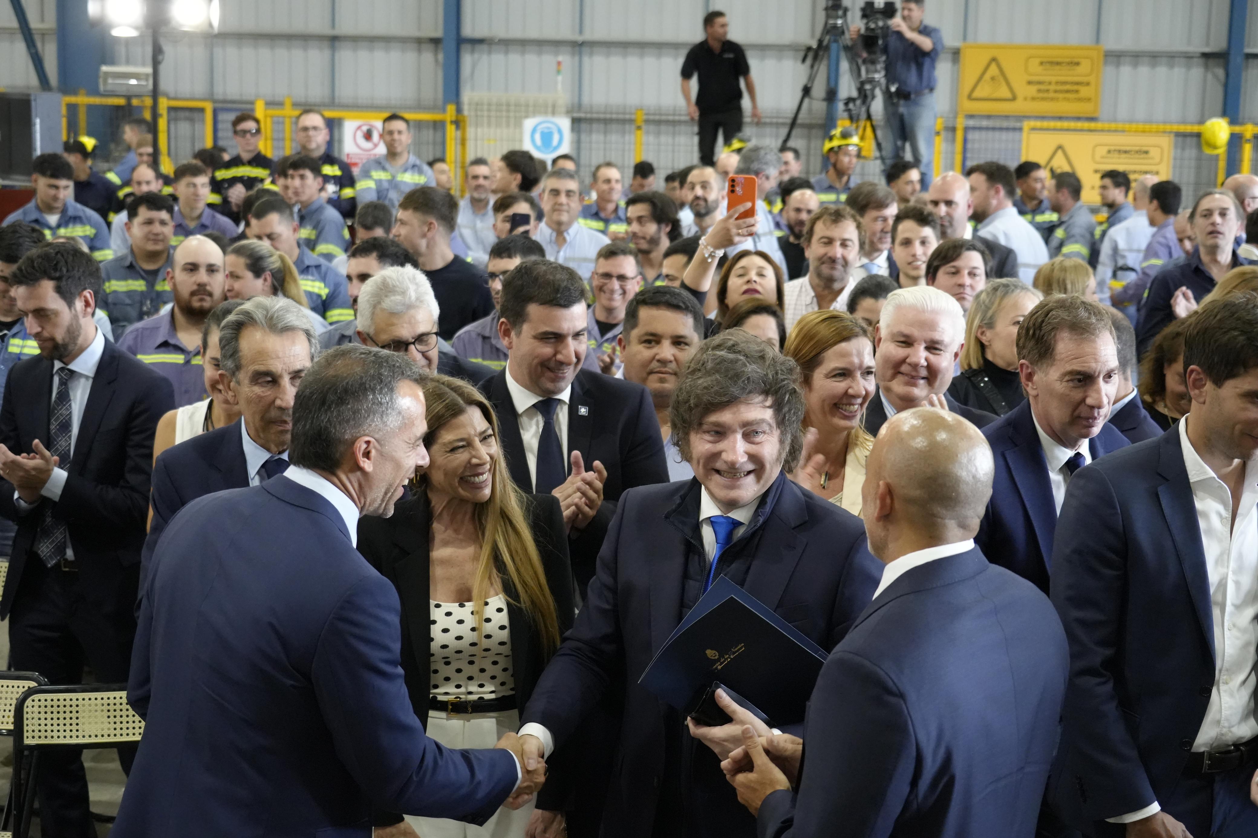 San Nicolás de los Arroyos, acompañado por Federico Sturzenegger, autor del Régimen de Incentivo a las Grandes Inversiones (RIGI); Diego Santilli y Karina Milei. La presencia del mandatario se dio en el marco del reconocimiento a la empresa por haberse convertido en la primera compañía industrial argentina en recibir la aprobación de un proyecto bajo el nuevo régimen. Durante la recorrida, las autoridades nacionales conocieron los avances del Proyecto Sidersa+, que contempla la construcción de una planta siderúrgica integral de última generación, con una inversión total de 300 millones de dólares. Parte de este desarrollo cuenta con un financiamiento del banco ICBC Argentina por 100 millones de dólares, en una operación considerada entre las más relevantes del sector metalúrgico nacional.