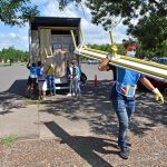 La tarea consistió en la descarga y ubicación de los nuevos pupitres, escritorios, sillas, armarios y demás elementos: 208 pupitres bipersonales, 615 sillas, 20 escritorios docentes, 31 mesas tipo comedor con sus respectivos bancos, 17 armarios, entre otros.