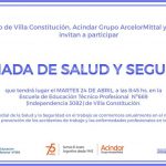 onmemorando el Día Mundial de la Salud y la Seguridad, la Escuela de Educación Técnico Profesional Nº 669 junto a Acindar y La Municipalidad de Villa Constitución realizaron una Jornada de Salud y Seguridad en la institución escolar el pasado martes 24 de abril.
