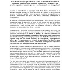 Comunicado Bolsa de Cereales, José Martins en Expoagro 2025 (Ver en galería de fotos el comunicado también)
