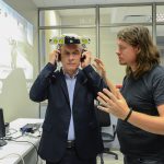 Antes del acto, el Presidente realizó una recorrida por las instalaciones junto a Martínez y dialogó con un grupo de becarios que trabajan en el CeDIT.