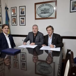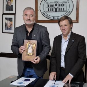 La firma del convenio también contó con la presencia del secretario de Seguridad de San Miguel, Héctor Calvente; el creador de este sistema de seguridad, Cristián Méndez, y el subsecretario de seguridad de Ramallo, Lautaro Correa, entre otras autoridades de ambos municipios.
