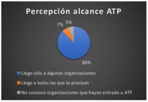 Alcance ATP.En relación con este punto, las aguas están divididas. Por un lado, el 53 % logró acceder, en tanto que el 47 % restante no pudo o no quiso obtener el ATP. En cuanto a cómo evalúan los empresarios pyme el acceso a ATP por parte de las empresas, para el 88 % llegó sólo a algunas organizaciones, sólo para el 1 % llegó a todas las empresas que las precisaban, en tanto que el 11 % dijo no conocer ninguna organización que haya logrado acceder.
