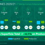 Por su parte, Esteban Copati, jefe de Estimaciones Agrícolas de la Bolsa de Cereales, destacó que el escenario climático será determinante este año, limitando no solo el área sembrada sino también los rendimientos previstos para cada uno de los cultivos más importantes de Argentina. En consecuencia, se prevén reducciones interanuales de -1,2 % en la superficie sembrada y de -6,1 % en la producción, que alcanzarían 33,15 millones de hectáreas y 120,8 millones de toneladas respectivamente. Los cultivos más afectados serían el trigo, el maíz y el girasol. De confirmarse este escenario, sería la segunda campaña consecutiva con caída en los números totales.