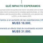 Este plan estratégico aspira a lograr, para el 2025, un impacto económico que implique un aumento de las exportaciones (VBP) de MU$S 16.000 que generará un efecto total de movimiento económico deMU$S 31.000.