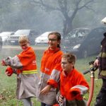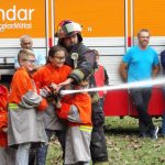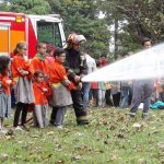 Al finalizar la jornada se realizó un simulacro de incendio donde los niños juntos con los bomberos ayudaron a pagarlo. Al igual que los docentes y quienes cuidaron de los niños el equipo de bomberos tuvo una actuación preponderante compartiendo las prácticas con los menores que fueron bomberos por un día. Aprendieron todo lo referente a equipo de seguridad, gafas, guantes, cascos, camperas especiales, barbijos protectores y la actitud para no producir accidentes y en caso de que suceda como actuar. Luego los presentes fueron invitados a un lunch.